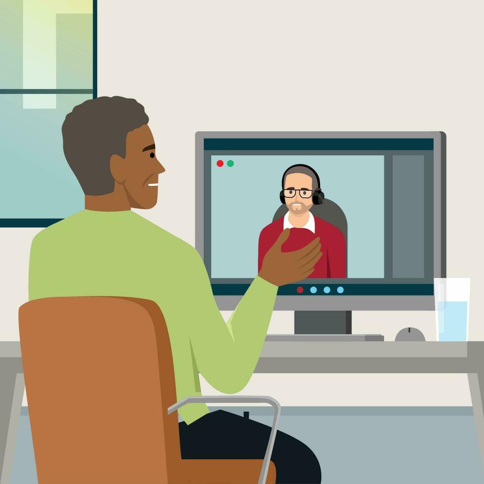 Video call chatting communication concept. Web camera video call, online conference concept illustration for web banner, web element or infographics element. Pro Vector