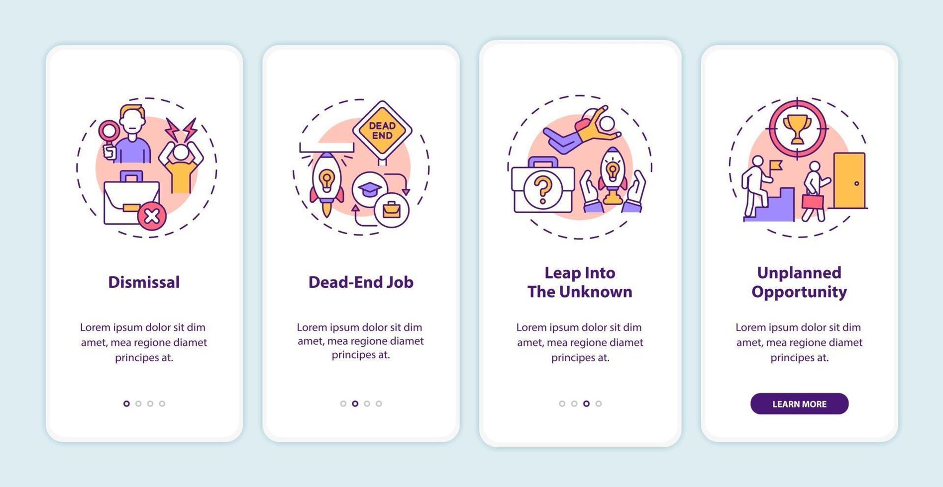 Job transition reasons onboarding mobile app page screen with concepts Pro Vector