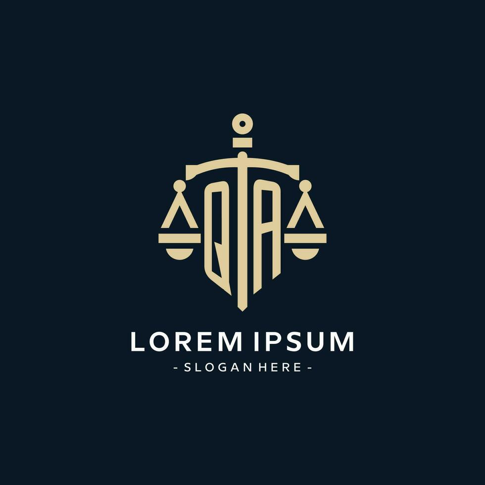 QA initial logo with scale of justice and shield icon Pro Vector and Pro SVG