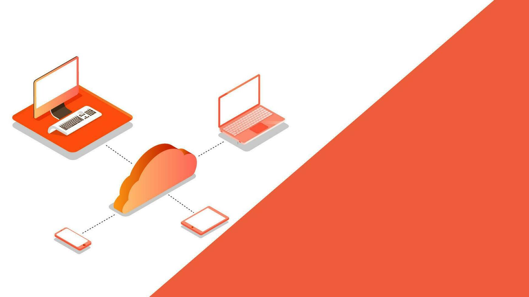 3D isometric illustration of digital devices connected with cloud server for Cloud Storage or Data Sharing concept. Pro Vector