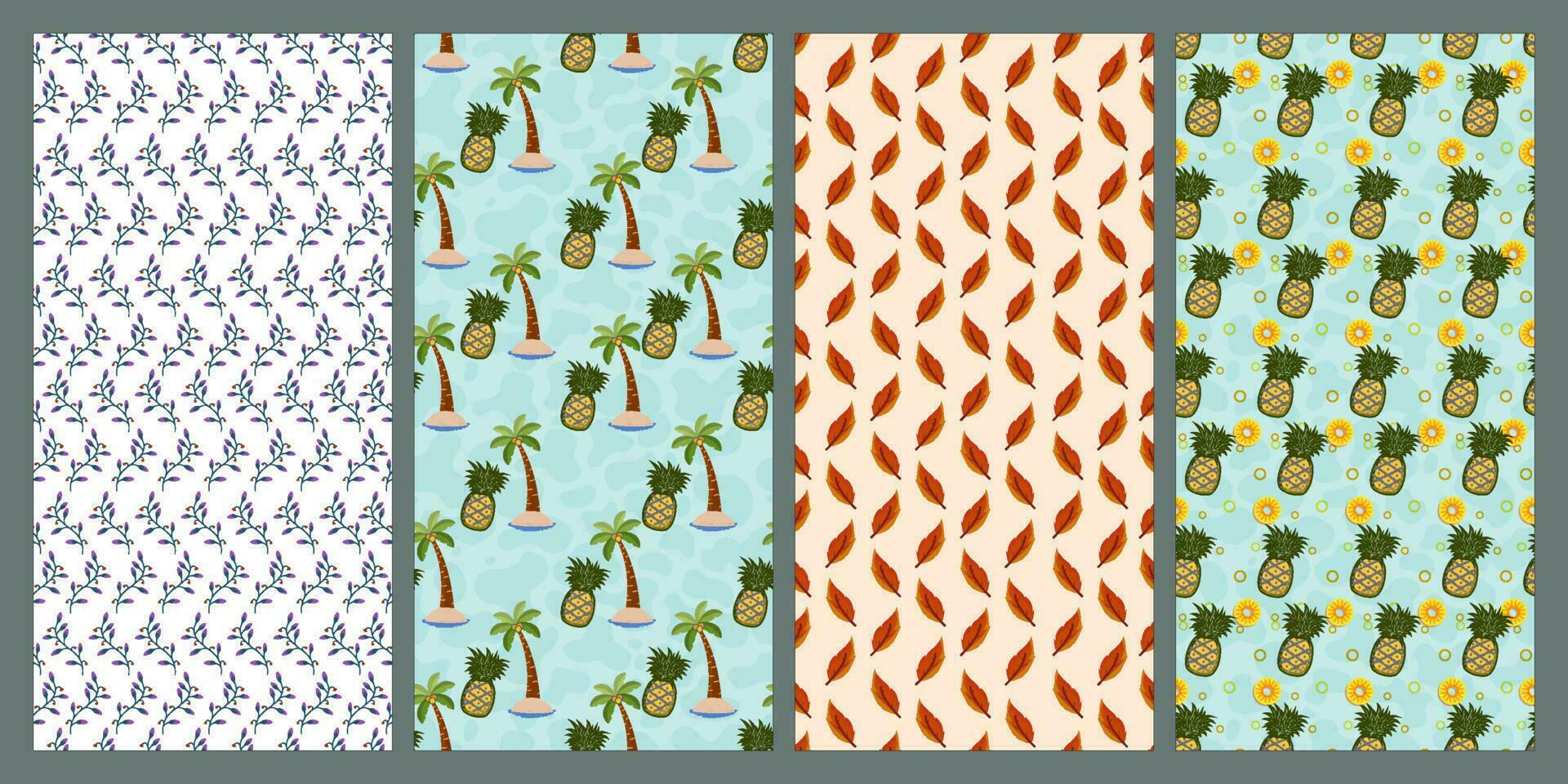 Set of pineapple, leaf and flower seamless pattern. Fruit pattern. Summer pattern. Patterns for textiles or for covers. Wallpapers. Pro Vector