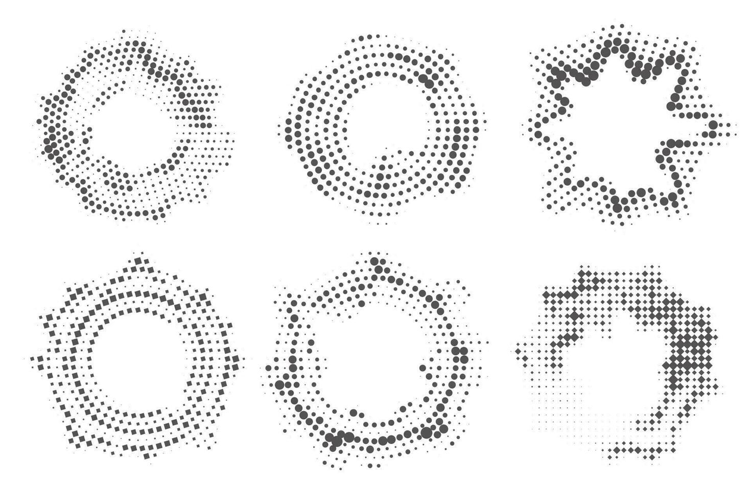 Dotted circle pattern. Abstract halftone round. Vector frame with random gradient gradation. Grunge rings design on white background. Pro Vector