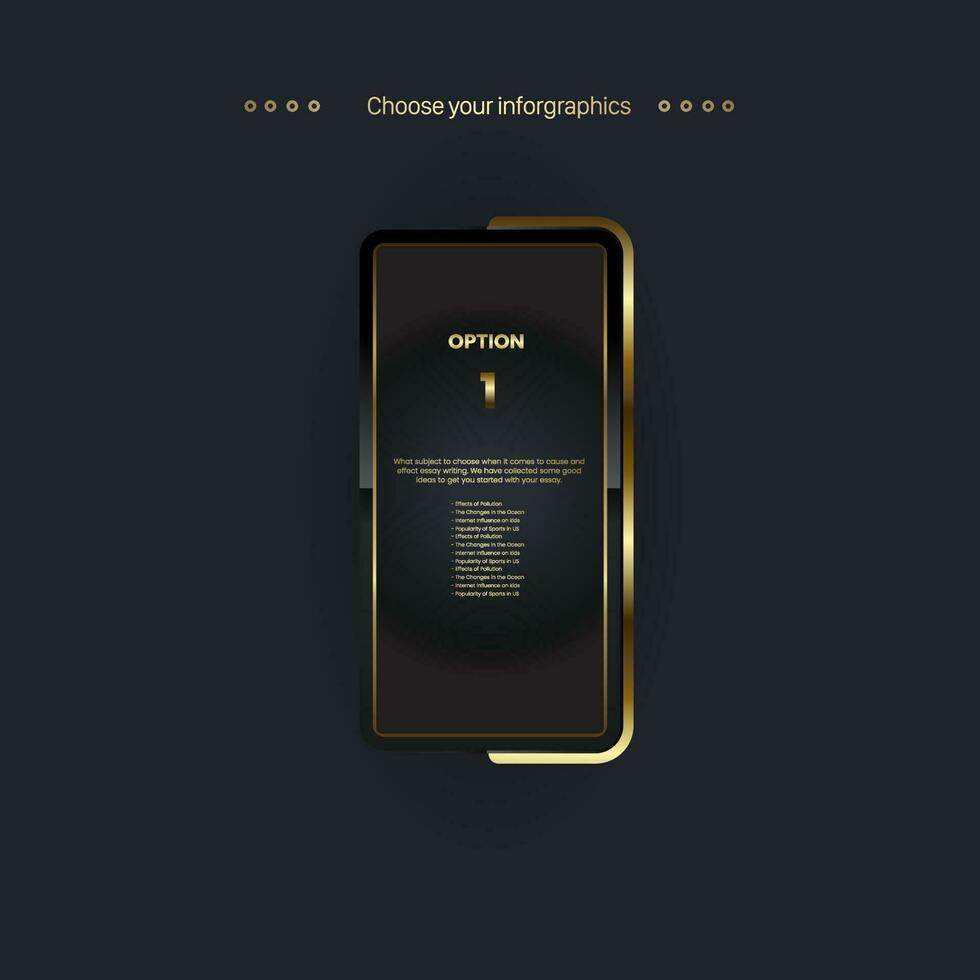 Premium button of option, golden button for web, level, AI, game, premium step to present or plan a workflow in a business infographic design vector