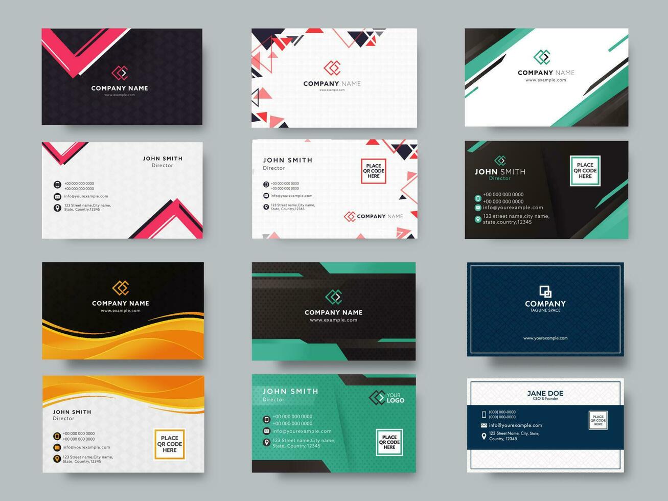 Set Of Editable Business Or Visiting Card In Front And Back View. Pro Vector