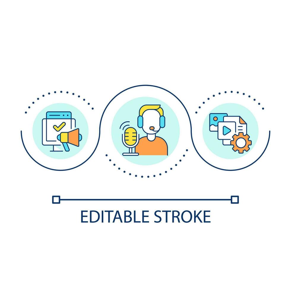 Create content for social media concept icon. Online streaming. Become full time streamer abstract idea thin line illustration. Isolated outline drawing. Editable stroke Pro Vector