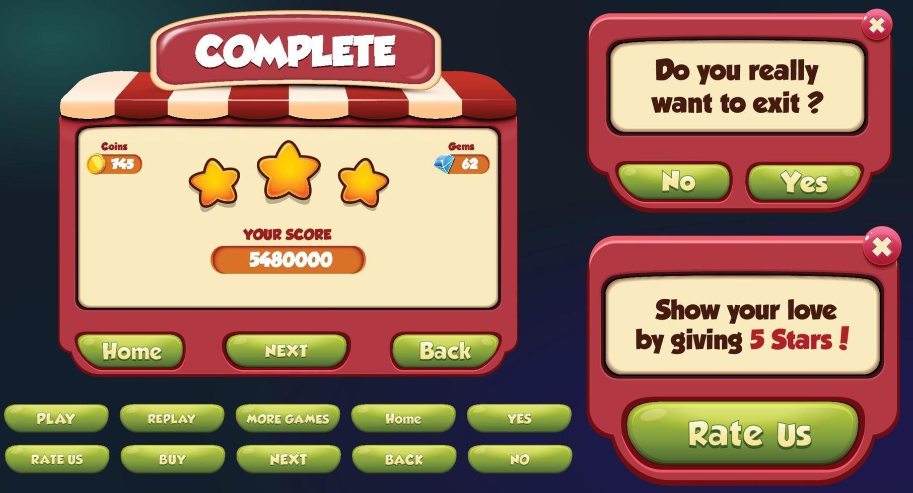 Level selection game menu scene with buttons loading bar and stars Pro Vector Pro Vector