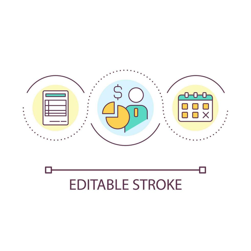 Time to pay taxes loop concept icon. Scheduled payment day. Withholding from earnings abstract idea thin line illustration. Isolated outline drawing. Editable stroke Pro Vector