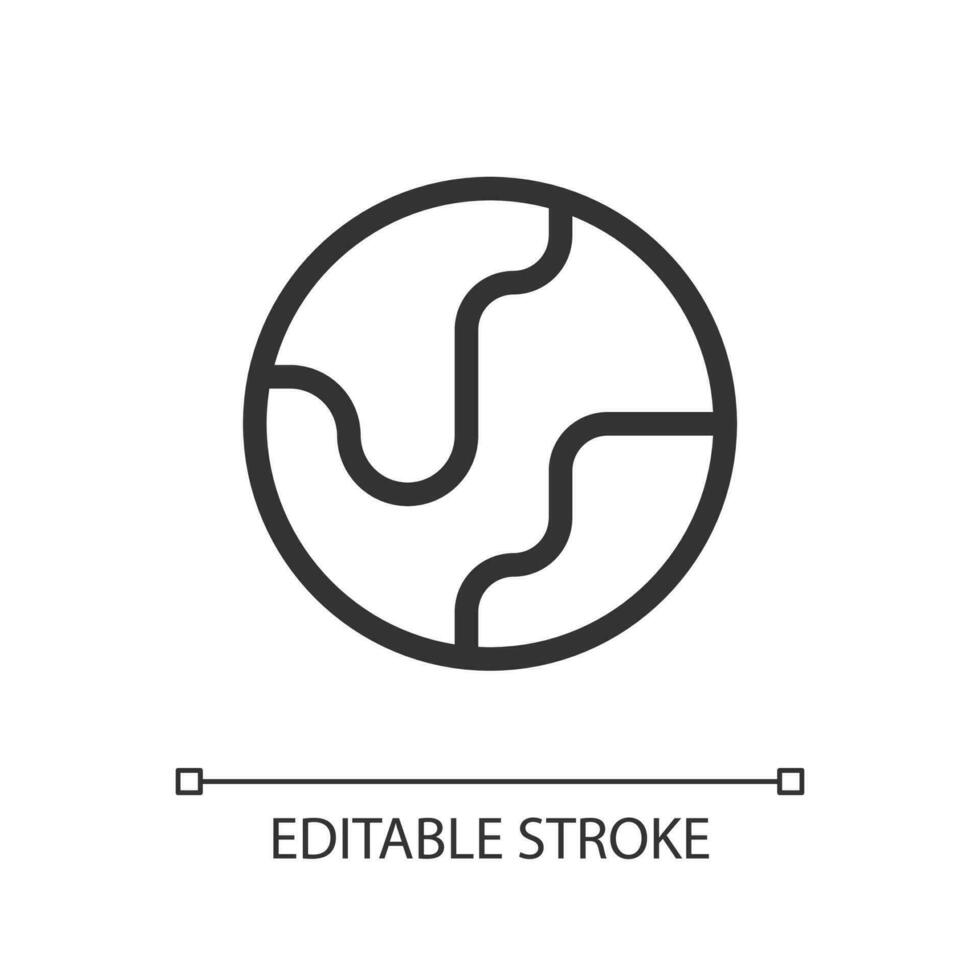 Earth planet pixel perfect linear ui icon. Website of business. Search for place on world map. GUI, UX design. Outline isolated user interface element for app and web. Editable stroke Pro Vector