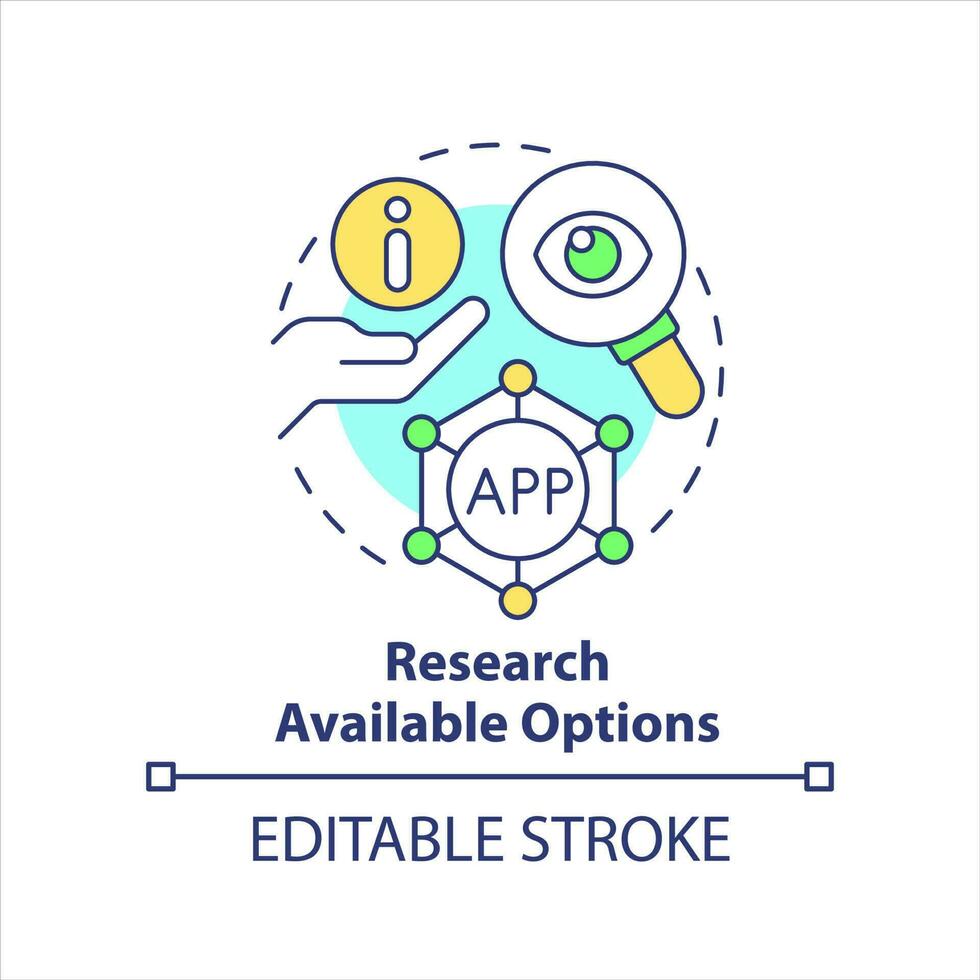 Research available options concept icon. Selecting process. Business consideration abstract idea thin line illustration. Isolated outline drawing. Editable stroke Pro Vector