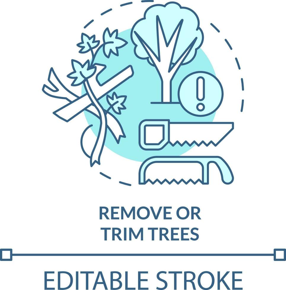 Remove and trim trees turquoise concept icon. Safety precaution abstract idea thin line illustration. Prune branches. Isolated outline drawing. Editable stroke Pro Vector