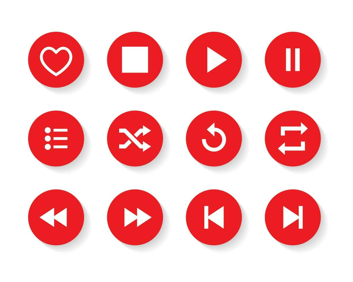 Play, stop, pause, shuffle, repeat, previous, next, favorite, and list icon vector. Elements for music app Pro Vector