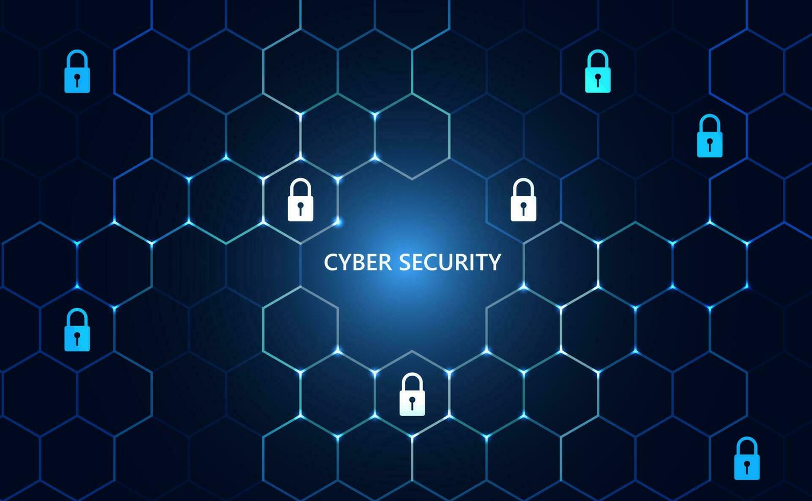 concept of cyber security padlock on hexagonal grid blue background beautiful Pro Vector