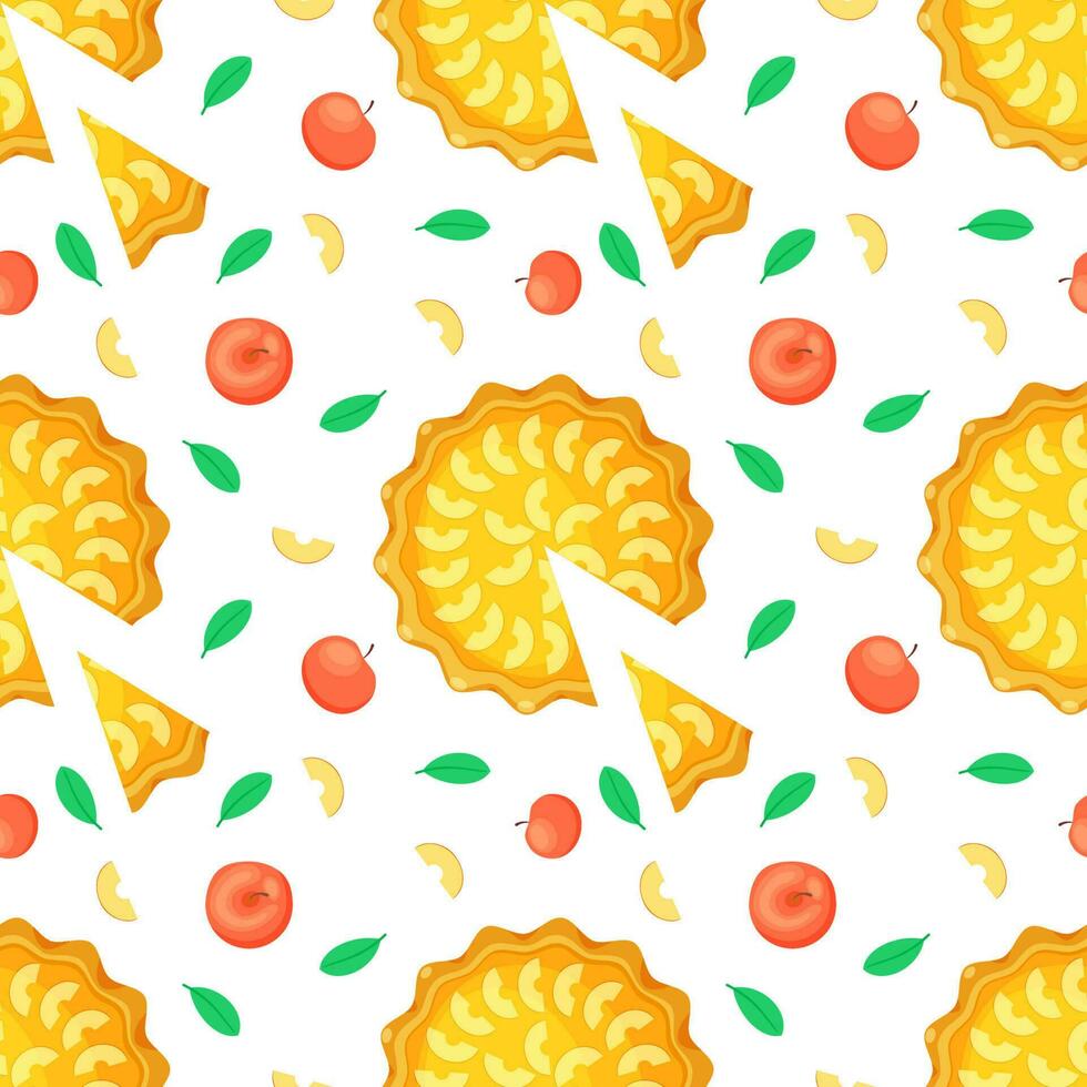 Seamless pattern with homemade apple pie, apples and slices apple. Dessert ready to eat. Concept of National pie day or Thanksgiving day for web, menu, wrapping, textile, background, fabric, wallpaper Pro Vector