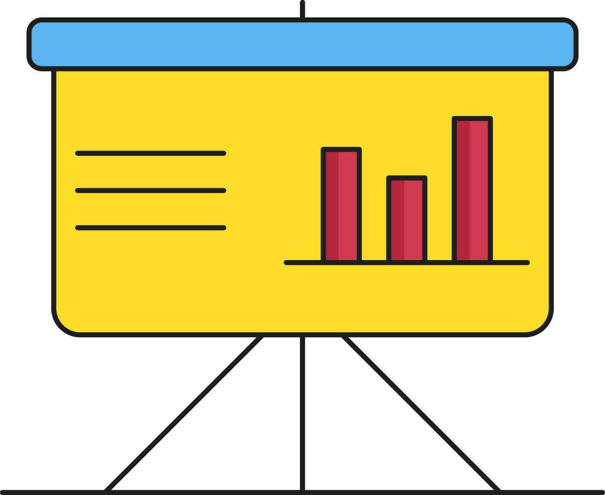Three Level Bar Graph Presentation Board On Tripod Icon In Flat Style. Pro Vector