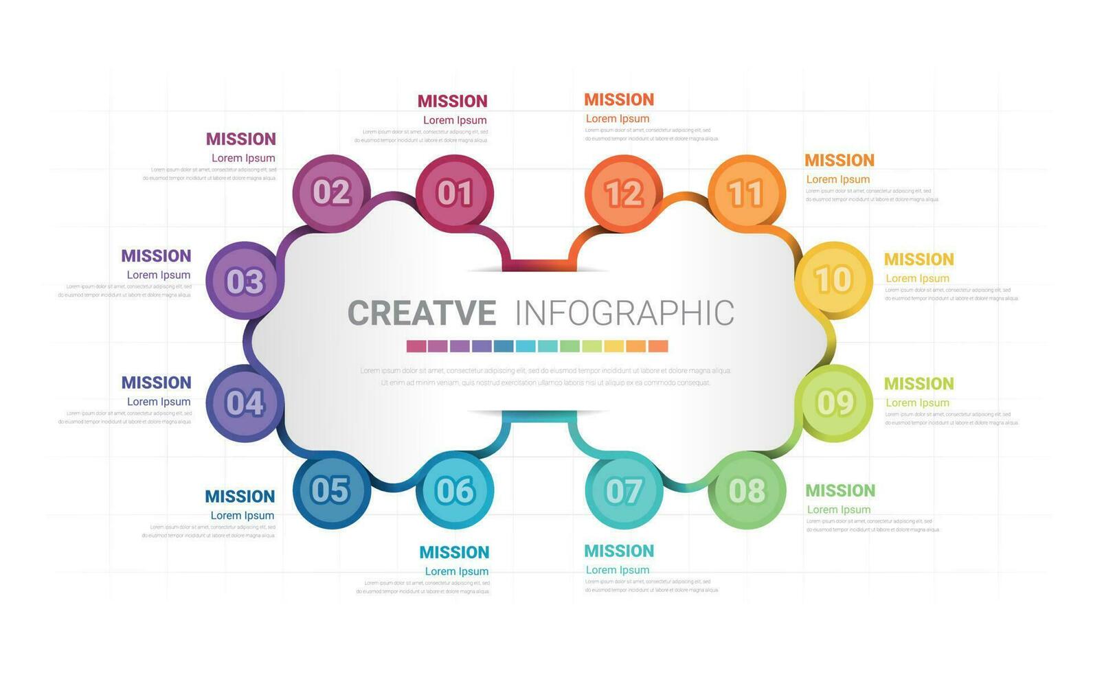 Infographic circle design for 12 options, steps or processes. can be used for Business concept, presentations banner, workflow layout, process diagram. Pro Vector