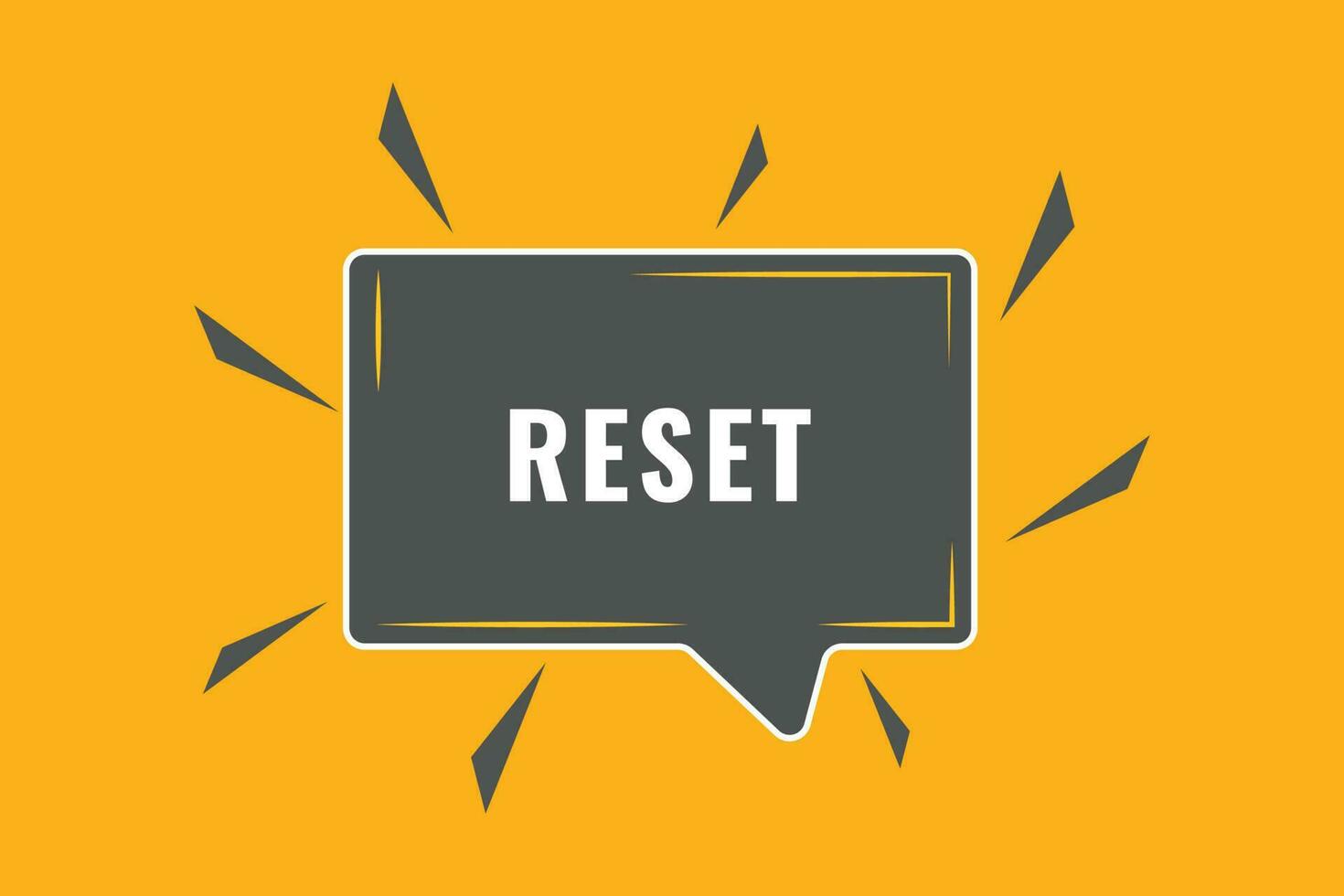 Reset Button. Speech Bubble, Banner Label Reset Pro Vector