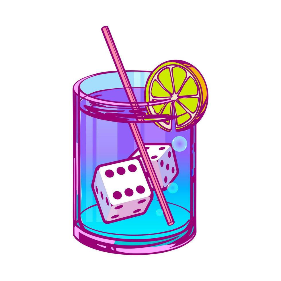 Cocktail with playing ice cubes in pop art style on a white background for printing and design. Vector illustration. Pro Vector