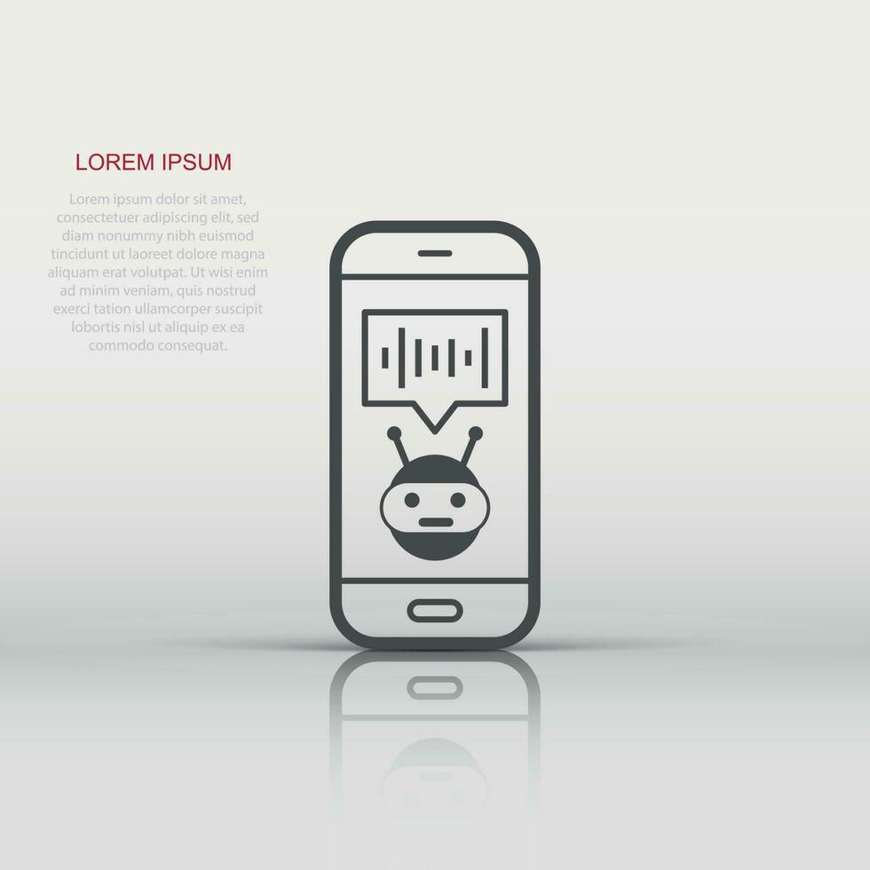 Voice assistant on smartphone icon in flat style. Sound record vector illustration on white isolated background. Chat recognition business concept. Pro Vector