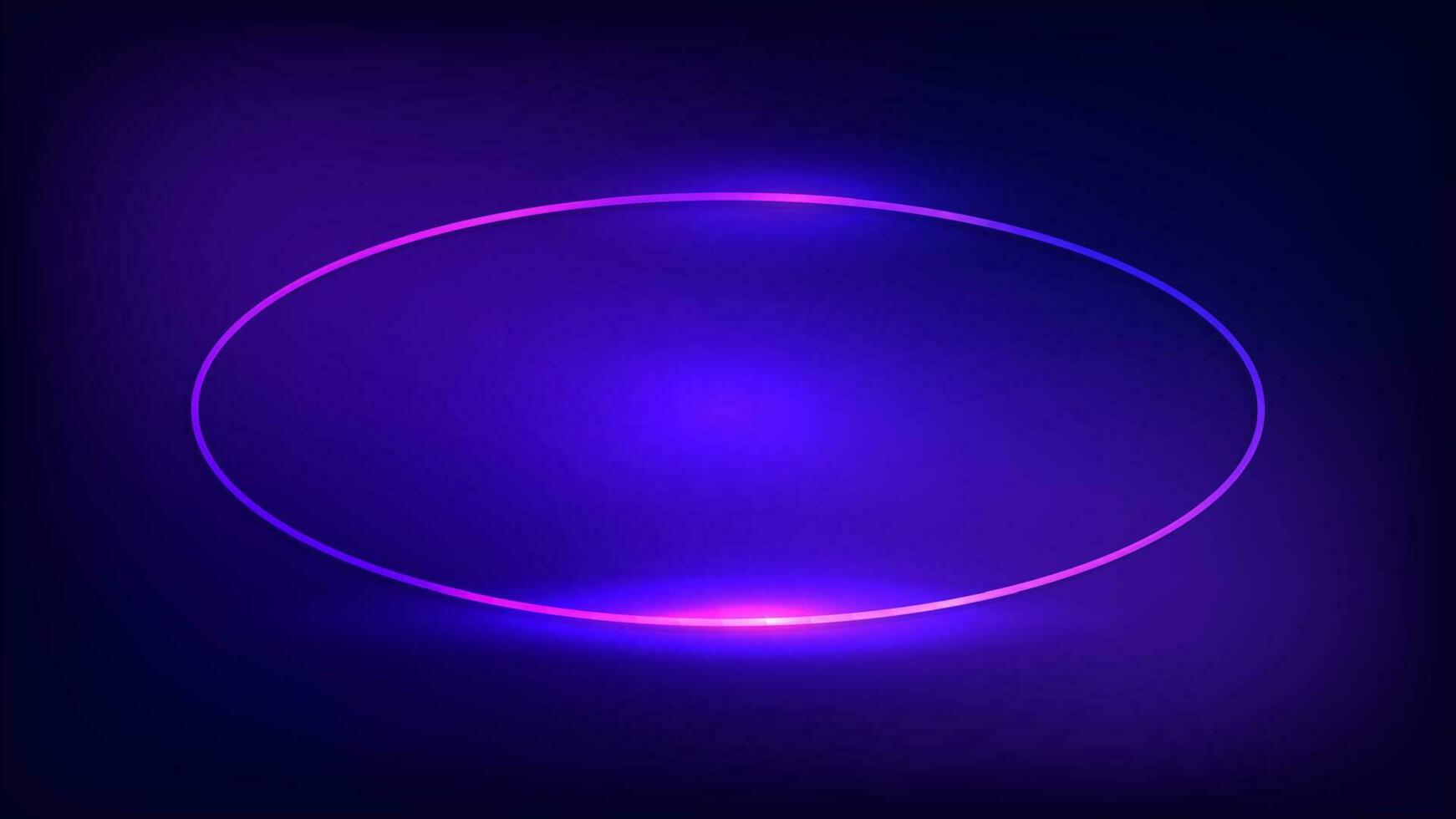 Neon oval frame with shining effects on dark background. Empty glowing techno backdrop. Vector illustration. Pro Vector