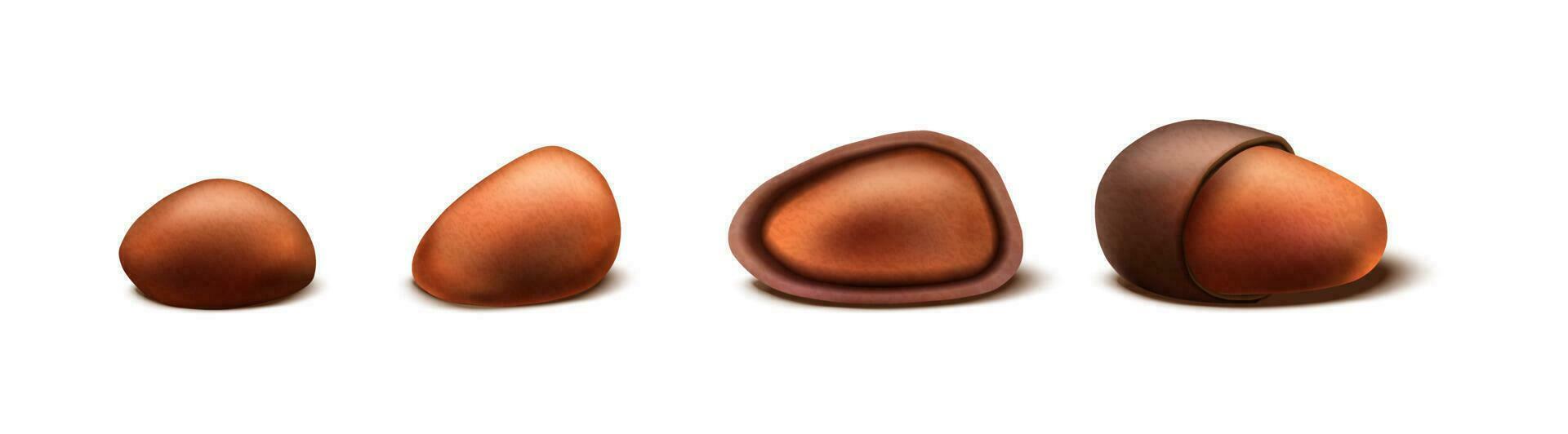 3d realistic vector icon. Pine nut collection in different shape with and without shell. Isolated on white background. Pro Vector