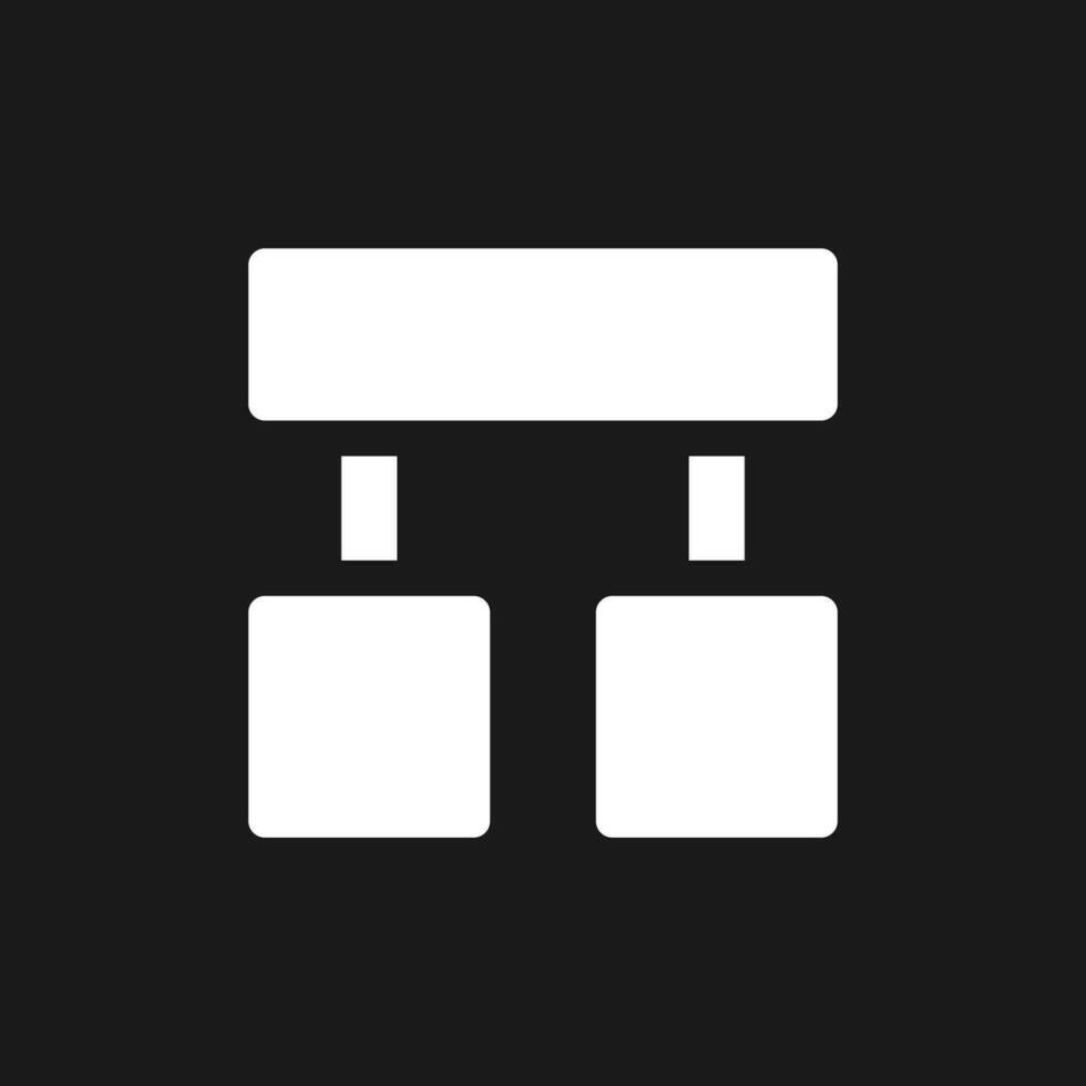 Block diagram pixel dark mode glyph ui icon. Project management. User interface design. White silhouette symbol on black space. Solid pictogram for web, mobile. Vector isolated illustration Pro Vector