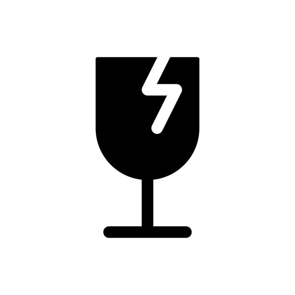 Broken wineglass black glyph ui icon. Fragile package. Attention sign. User interface design. Silhouette symbol on white space. Solid pictogram for web, mobile. Isolated vector illustration Pro Vector