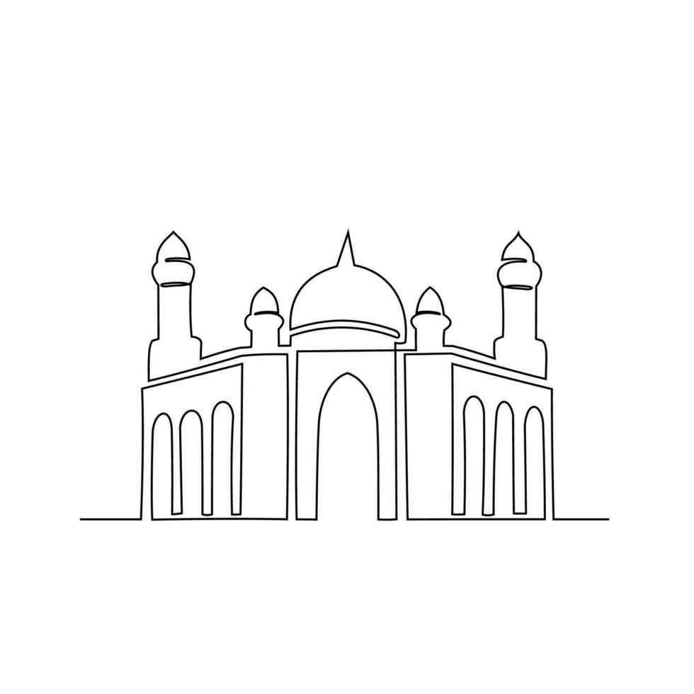 One continuous line drawing of a Mosque. Design Place of moslem praying with simple linear style. Ramadan kareem design concept Pro Vector
