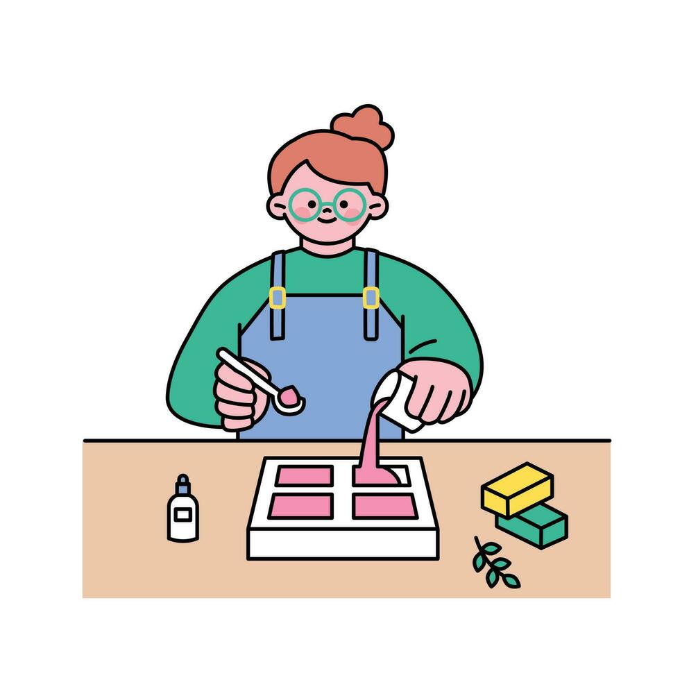 One day class workshop. People are learning new skills. Making handmade soap. Pro Vector
