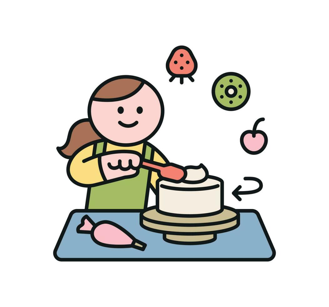 One day class workshop. People are learning new skills. Illustration of geometric design. cake making Pro Vector