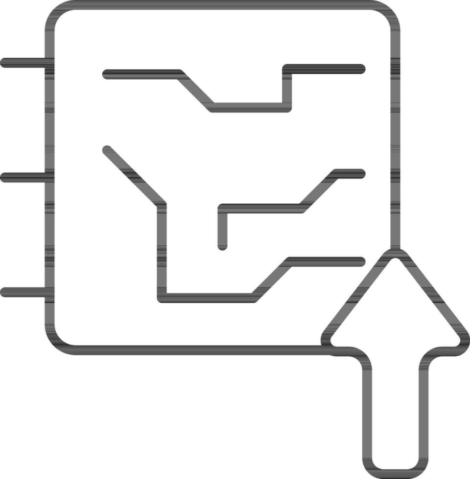 Flat style Microchip with up arrow icon in line art. Pro Vector