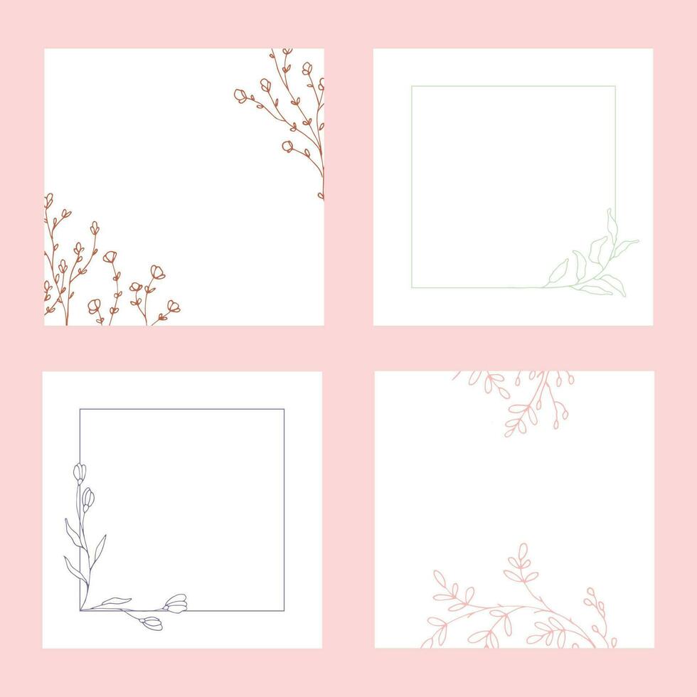 Set of simple postcard copy space. Square floral frame template Pro Vector