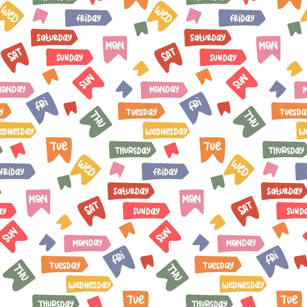 A pattern of flags with labels of days of the week for the calendar. Abstract background with square and triangular flags. Calendar reduction. Seamless calendar background. Print on textiles and paper vector