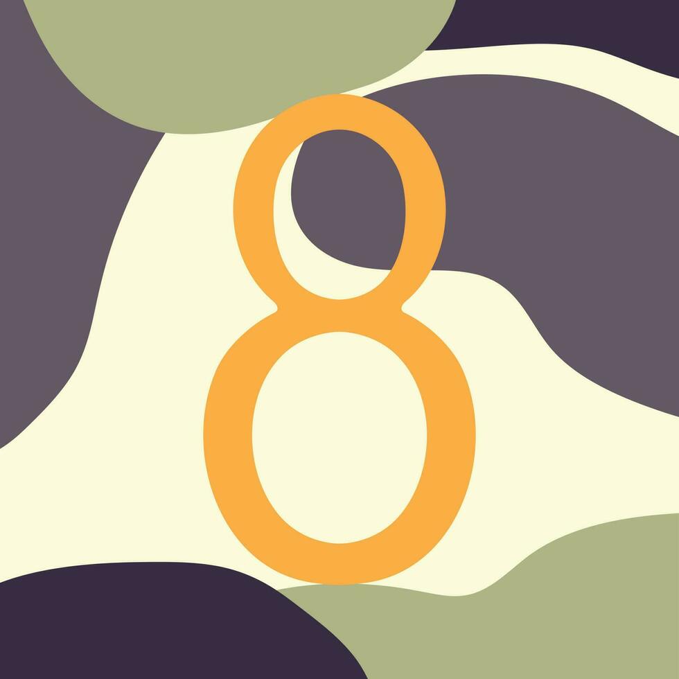 Hand drawn background with number eight and abstract shapes. Vector illustration