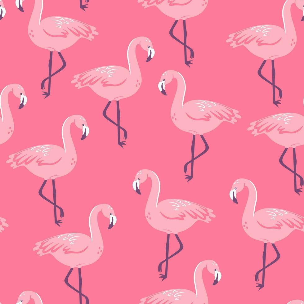 Seamless pattern with flamingos on a pink background. Vector graphics.