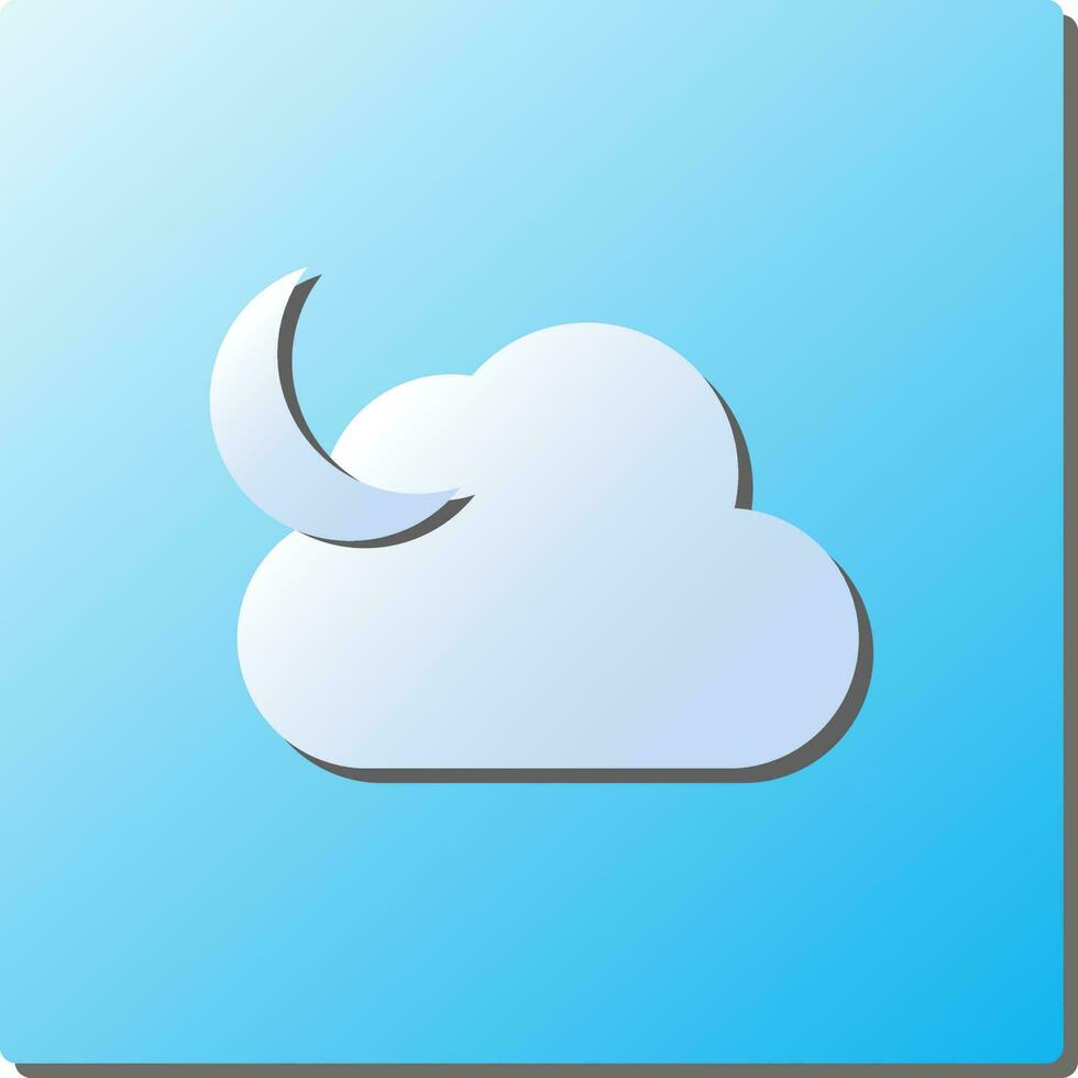 White Paper Crescent Moon With Cloud Icon On Square Background. Pro Vector and Pro SVG