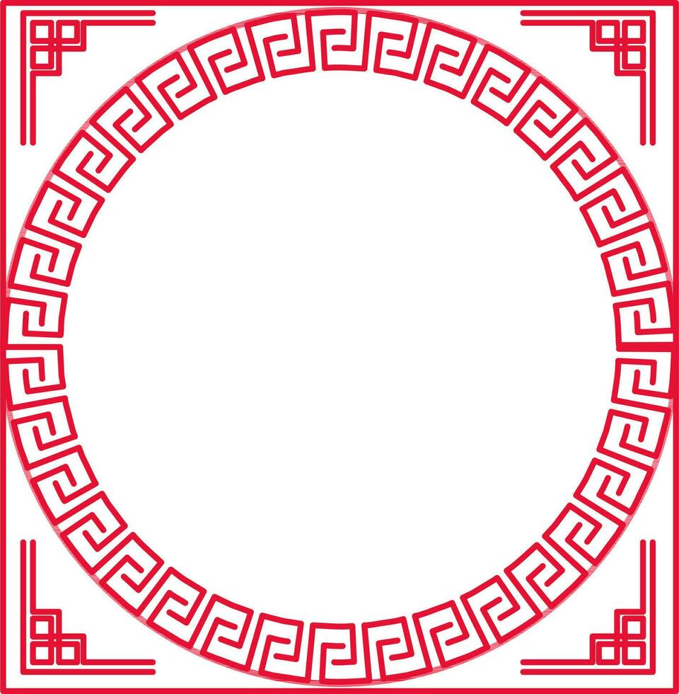 Empty Chinese Circular Frame In Red Linear Style. Pro Vector