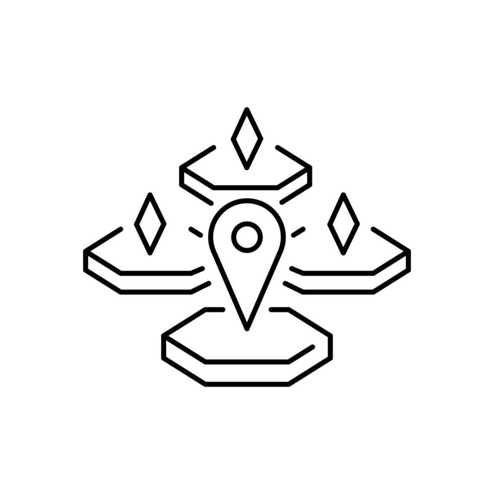 Shared digital world, metaverse development thin line icon. Virtual monitor or hologram. Pixel perfect, editable stroke. Vector illustration. Play online VR or virtual reality game. Level location map Pro Vector