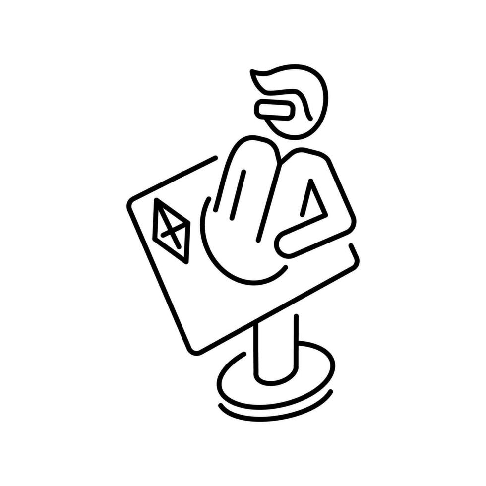 Avatar in metaverse. Thin line icon. Settings, choosing appearance. Pixel perfect, editable stroke. Vector illustration. virtual monitor or hologram. Teleport and loop. VR or virtual reality. Pro Vector