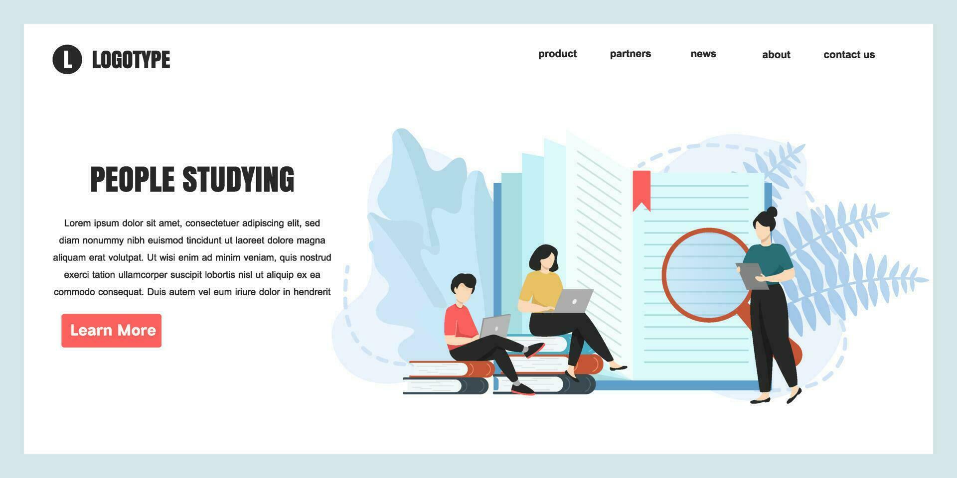 flat design concept people studying for website and landing page template. perfect for web page design, banner, mobile app, Vector illustration Pro Vector
