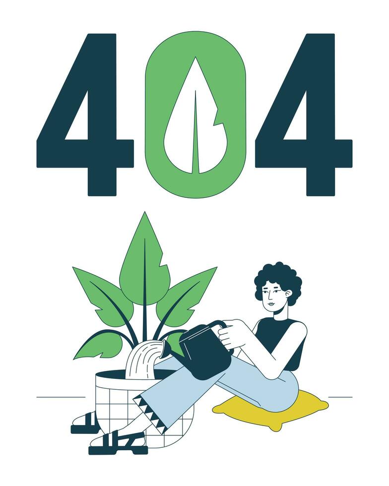 Gardening houseplant error 404 flash message. Environmental friendly. Watering plant. Empty state ui design. Page not found popup cartoon image. Vector flat illustration concept on white background Pro Vector