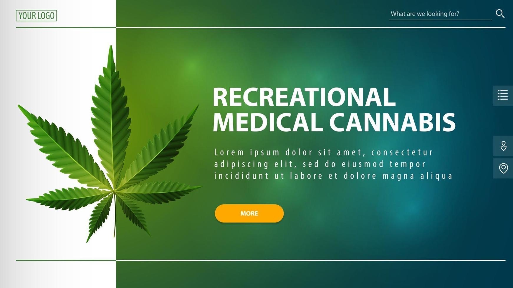 Green banner for website with offer button cannabis leaf and interface elements of website Pro Vector