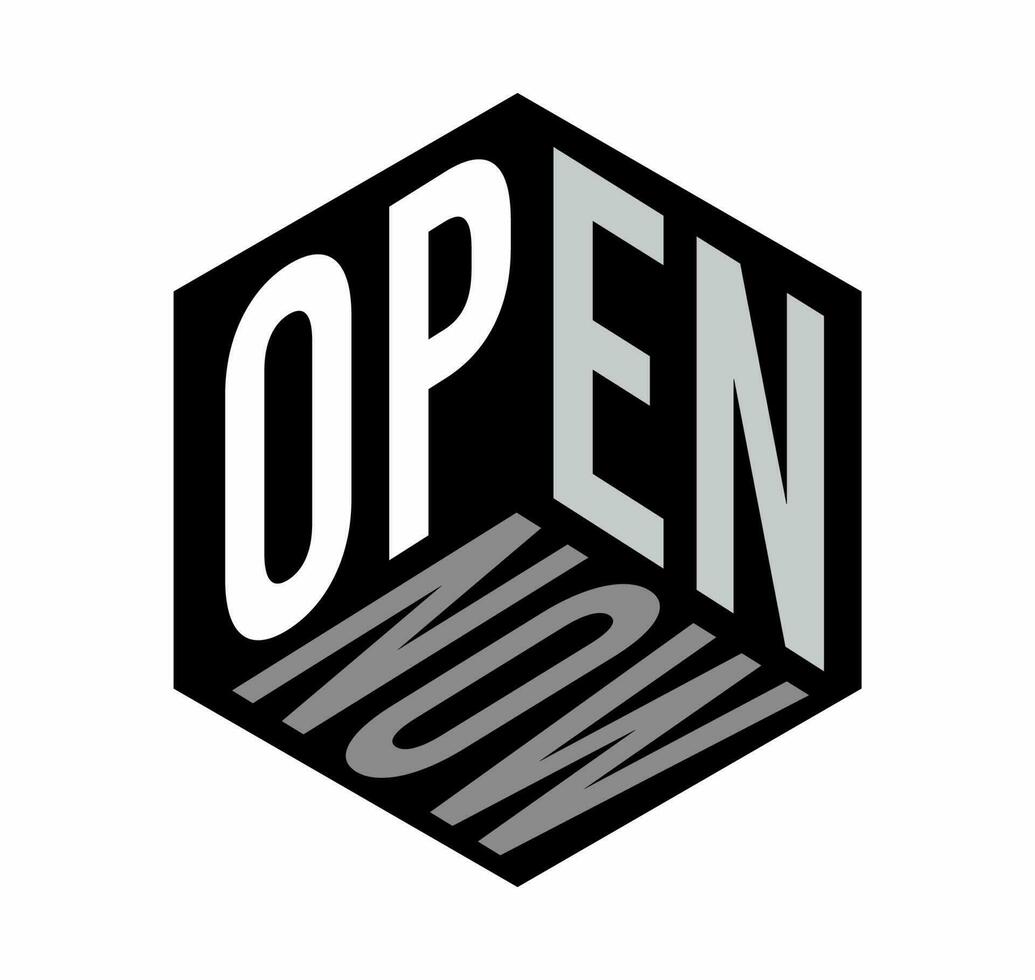 Logo and text OPEN NOW in a 3D box, isolated on white background. Pro Vector and Pro SVG