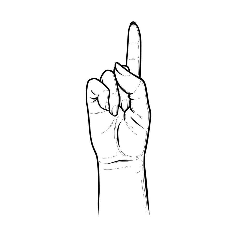 Raised index finger showing number one. Finger pointing in certain direction. Vector illustration isolated in white background Pro Vector