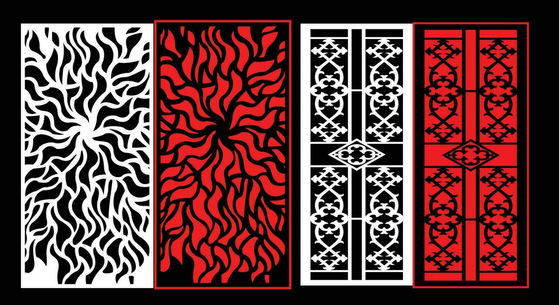 Decorative wall panels set Jali design CNC pattern, laser cutting pattern, router CNCcutting.Jali Laser cut decorative panel set with lace pattern vector