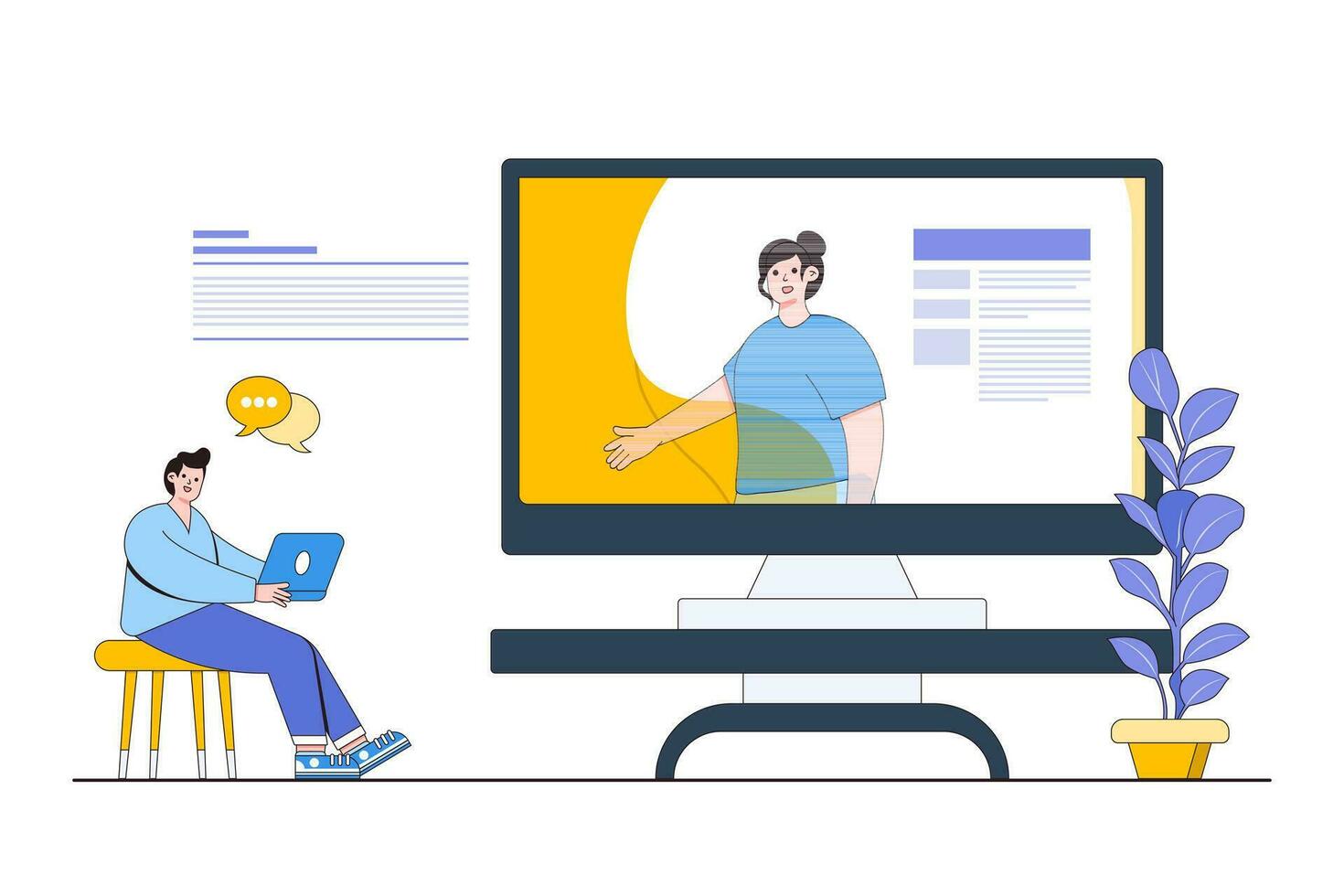 Digital Collaboration and Virtual Teams Concept with Person Collaborating on a Project Remotely Pro Vector