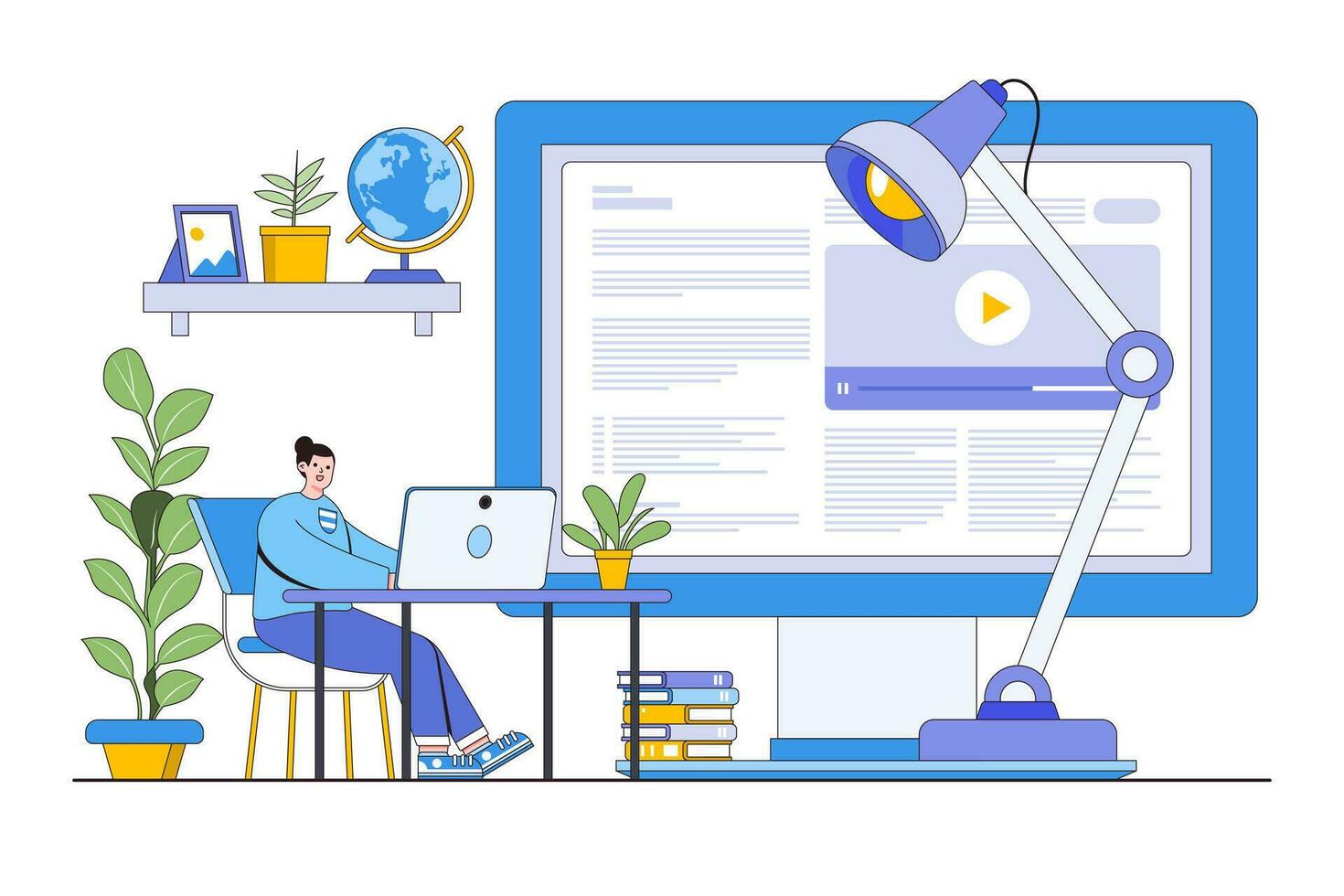 Remote Learning and Virtual Classrooms Concept with Person Attending an Online Lecture Pro Vector