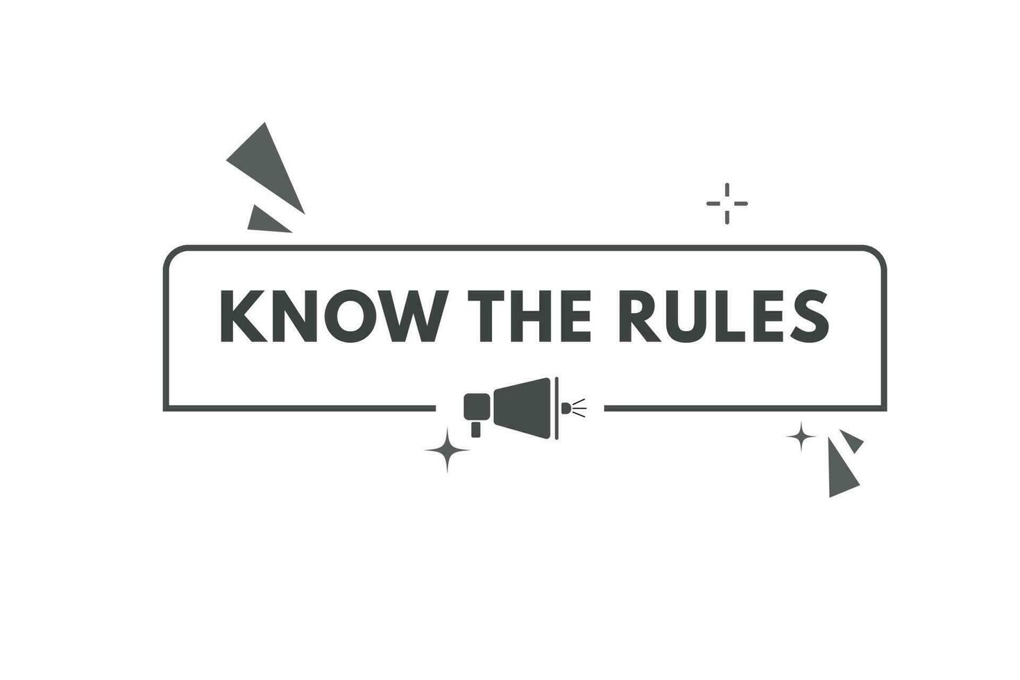 Know Your Rules Button. Speech Bubble, Banner Label Know Your Rules Pro Vector