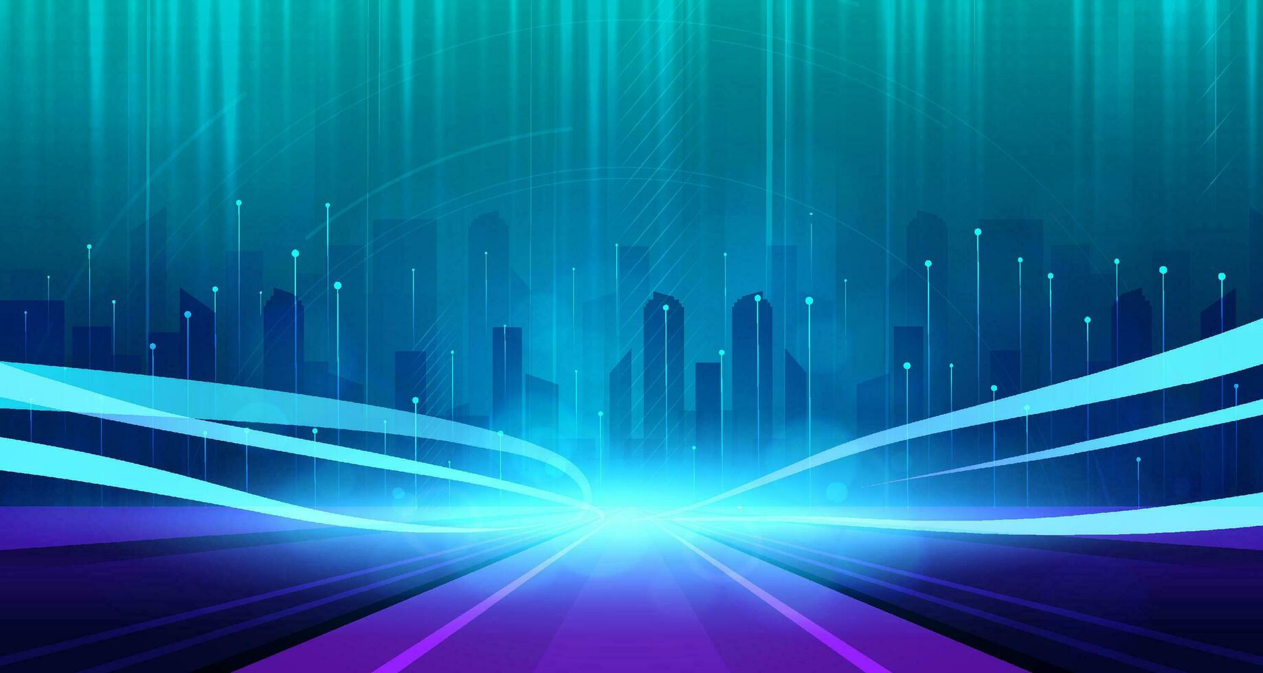 Digital technology city metaverse neon blue green background, abstract cyber communication, innovation future cyberpunk metropolis tech, internet network connection, Ai big data, town illustration 3d Pro Vector