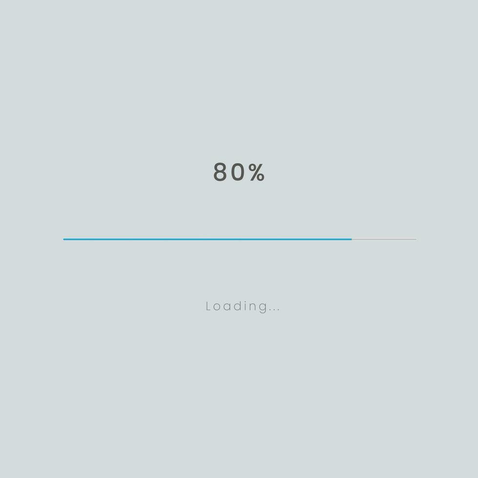 Rainbow 80 pecent loading sign vector illustration on grey background. Light blue loading bar in progress symbol, icon, banner. Used for updating and upgrade concept