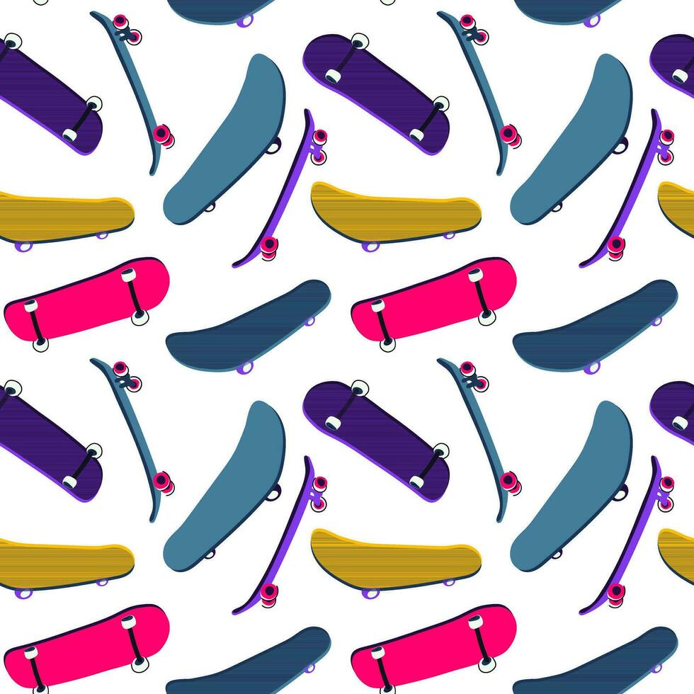 Hand-drawn seamless pattern for skateboarding. The texture of the skate background. Illustration of doodles for skateboarding. Vector seamless repeating pattern. Printing on textiles and paper Pro Vector